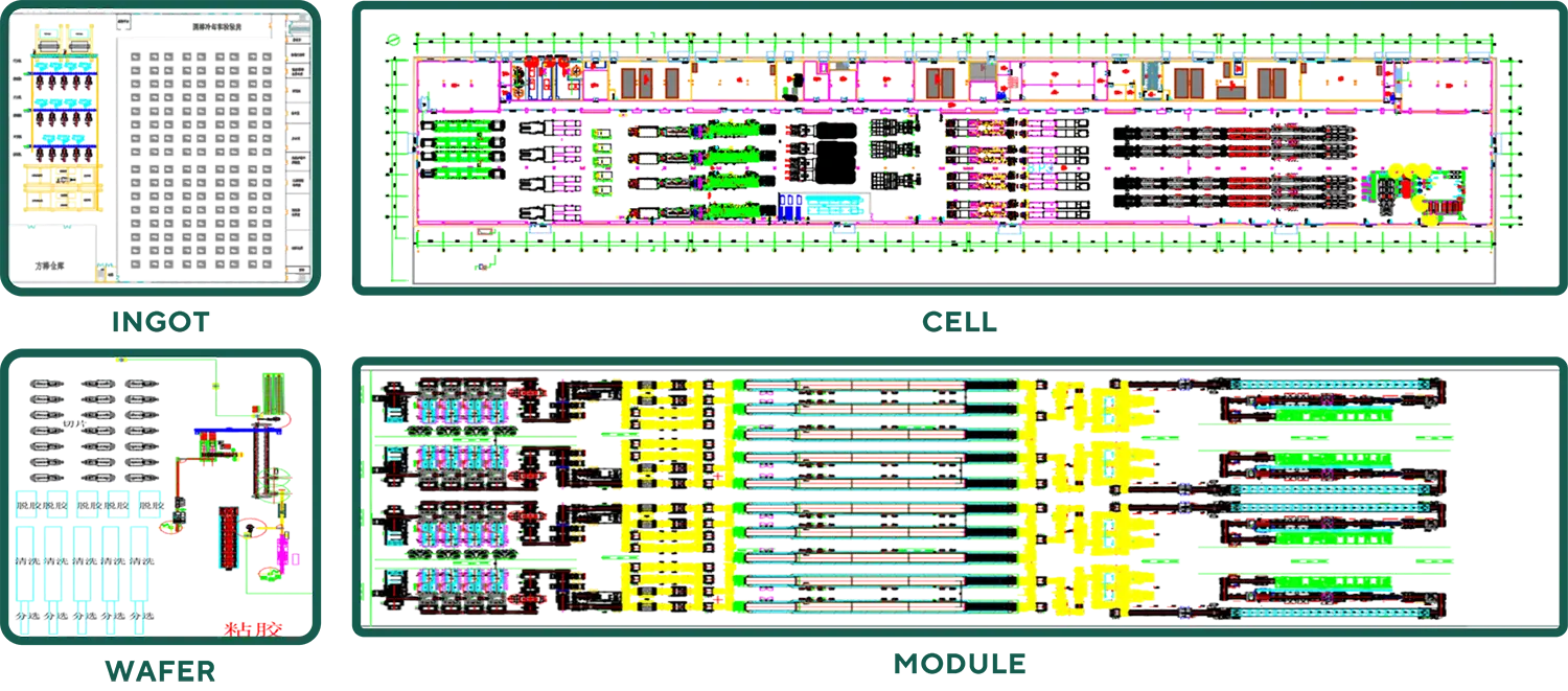 太阳能工厂:光伏生产基地(2GW - 硅锭、硅片、电池和组件)的投资回报分析、生产线设计和产能规划。